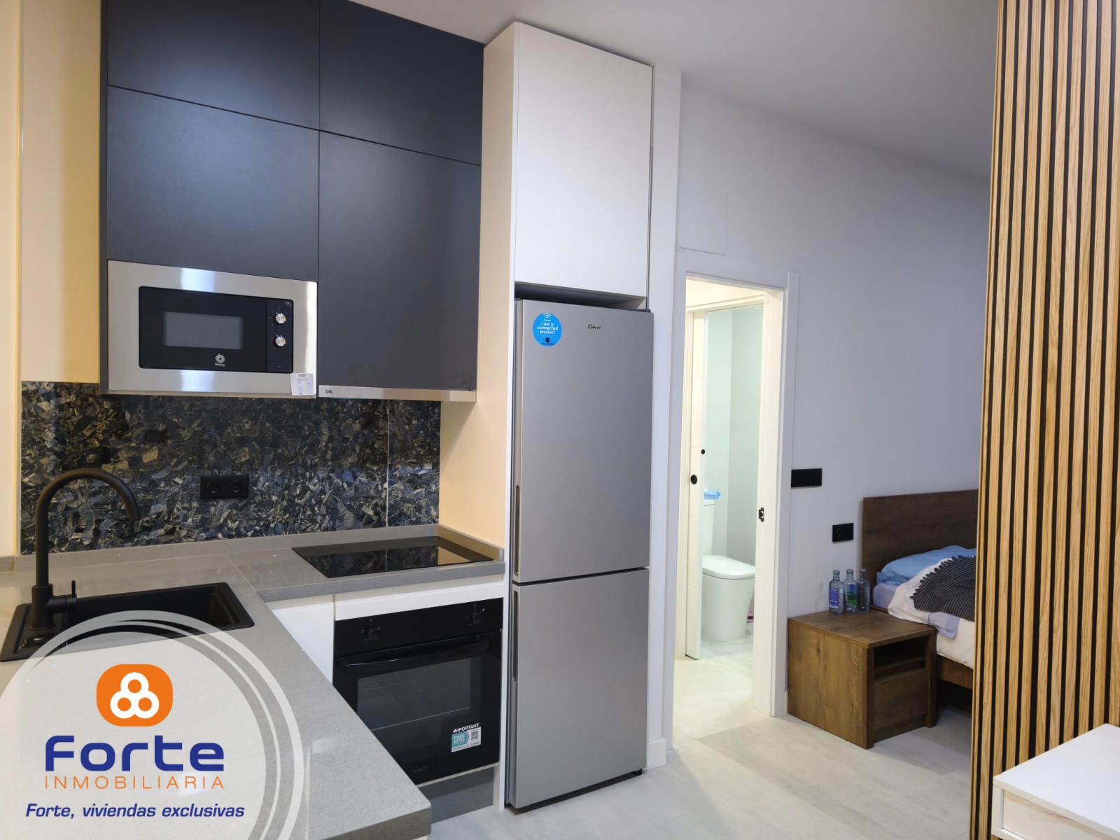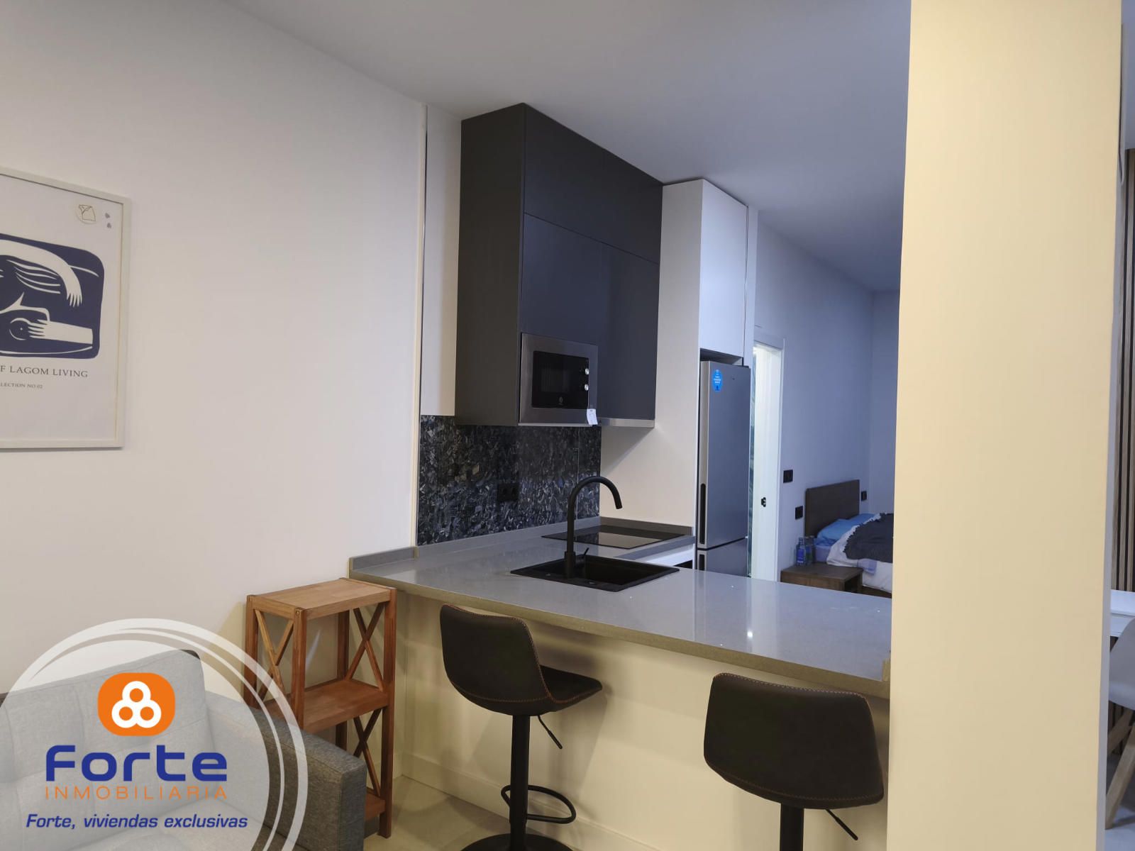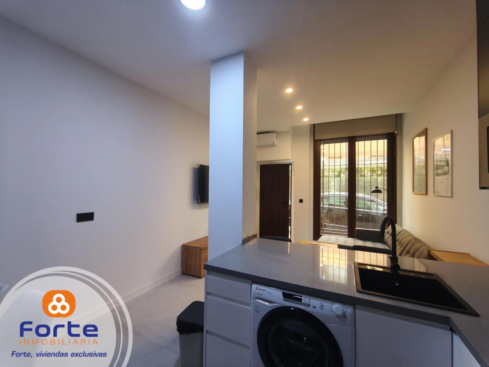 DISPOSICIÓN DE LA VIVIENDA: La distribución de la vivienda es la siguiente; superficie de 45 metros, 1 habitaciones, 1 baño, salón independiente, cocina amplia y amueblada , puerta blindada.