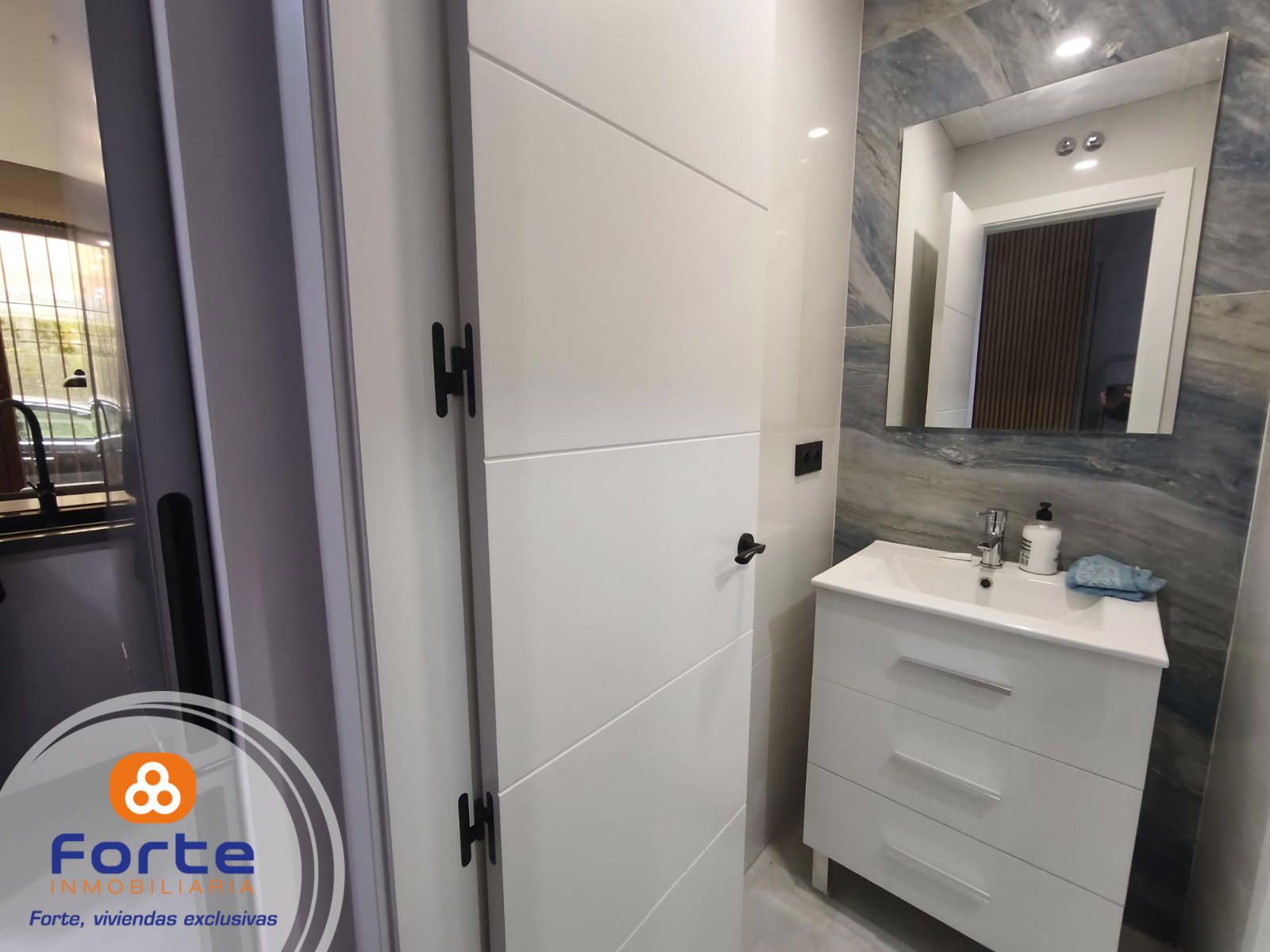 CALIDADES: Suelo de gres porcelánico , ventanas de aluminio lacado en blanco . Carpintería interior madera lacado en blanco.