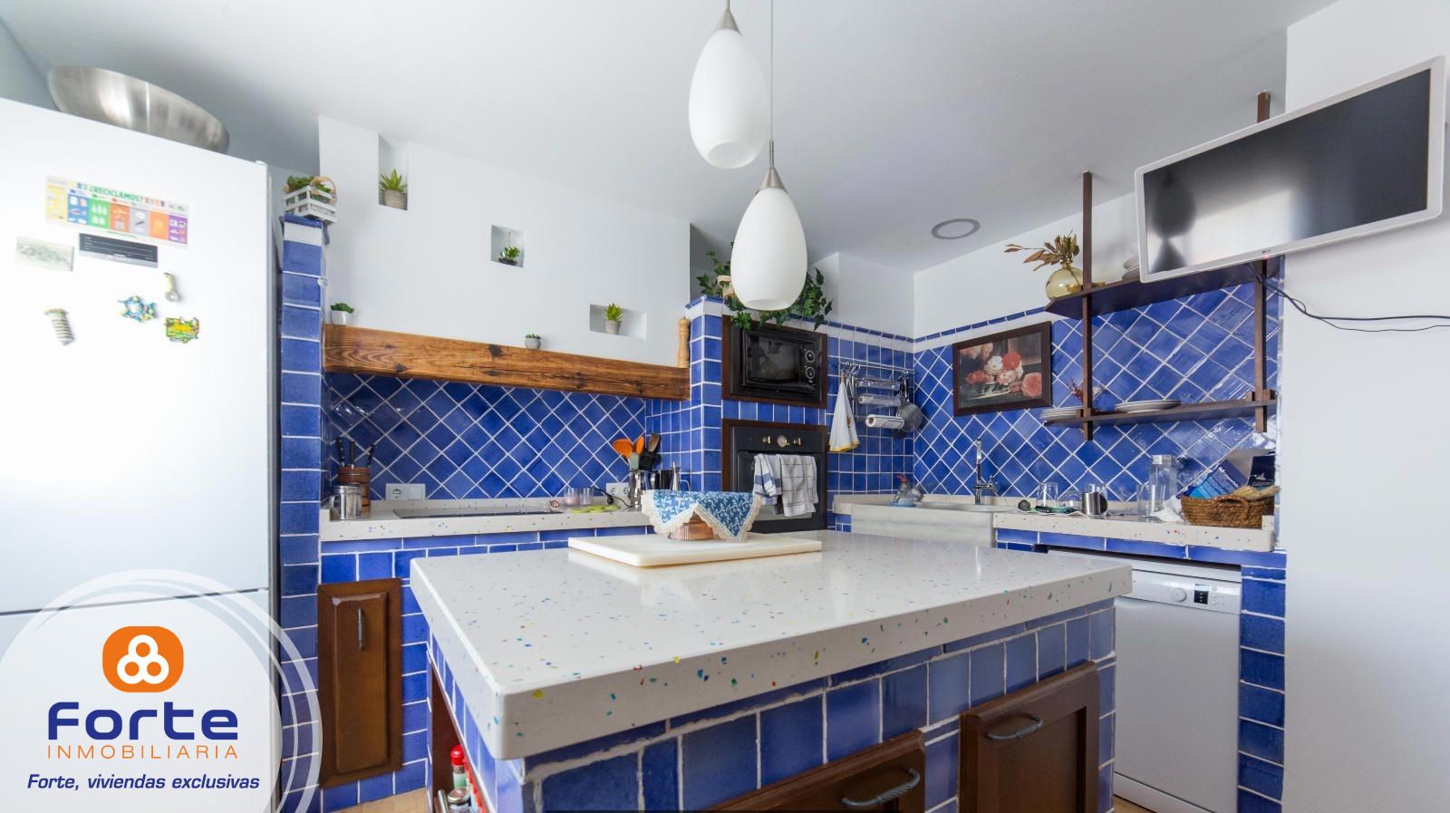 * 1ª planta encontramos la cocina con una isla, un pequeño patio con lavadero, un baño completo y 1 habitación independiente (con posibilidad de cambiar el uso a salón)